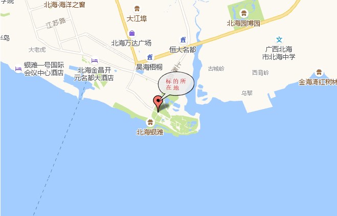 该项目位于年接待游客2500万以上的中国旅游“王牌景点”的北海银滩区域,距离银滩景区大门约500米。