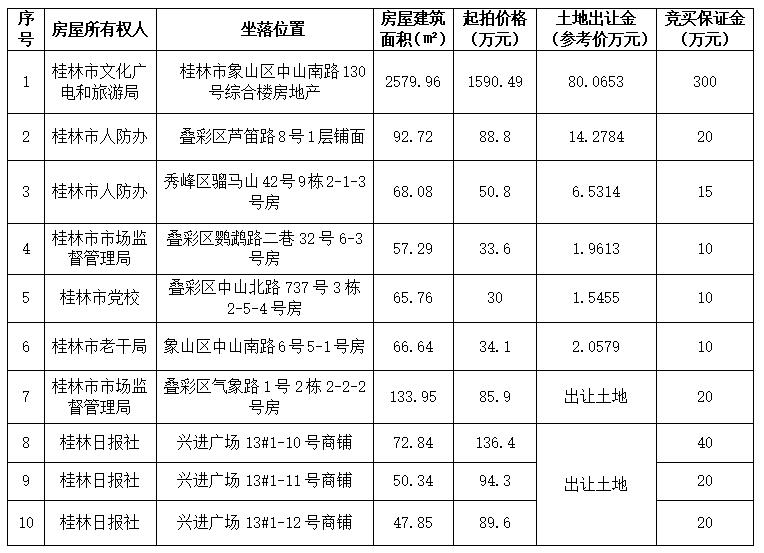 受委托,我公司定于2021年5月25日10:30时在桂林市公共资源交易中心11号开标室举行拍卖会,依法按现状公开拍卖以下标的: