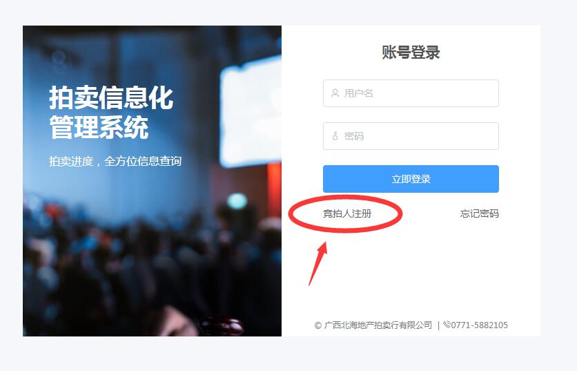 (或微信搜索310080218)→发送公司资质初步审核→在拍卖信息化管理系统填写会员信息→携带报名材料(见下表)到南宁公司办公室审核提交后→通过拍卖信息化管理系统公司认证