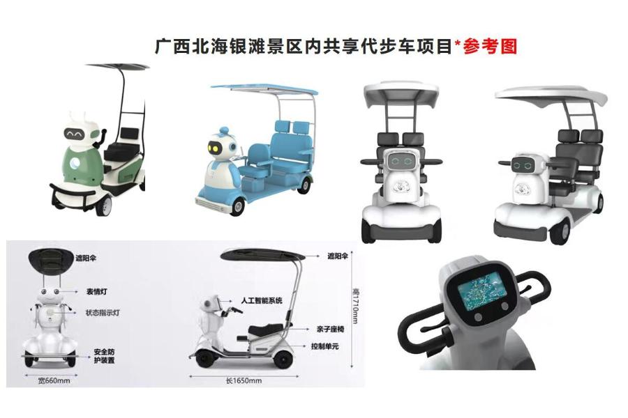 3、广西北海银滩景区内共享代步车项目5年租赁权。起拍价30万元/年(委托人年保底收入),经营范围:景区内共享代步车租赁服务,仅限于银滩景区内道路上行驶(不含潮街)。保证金:10万元。