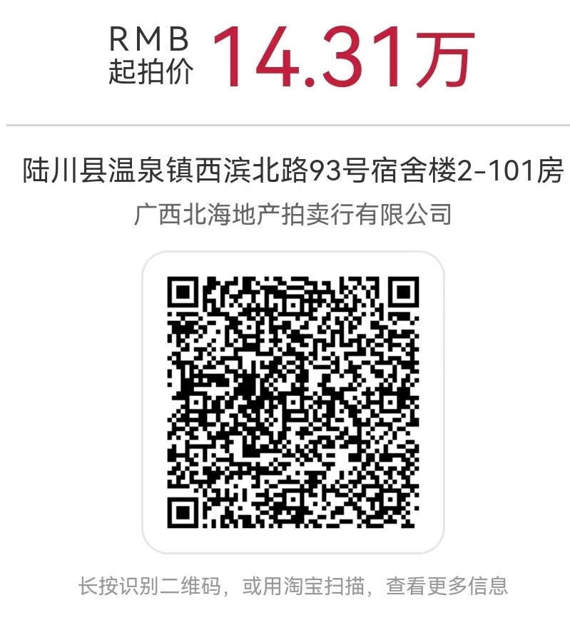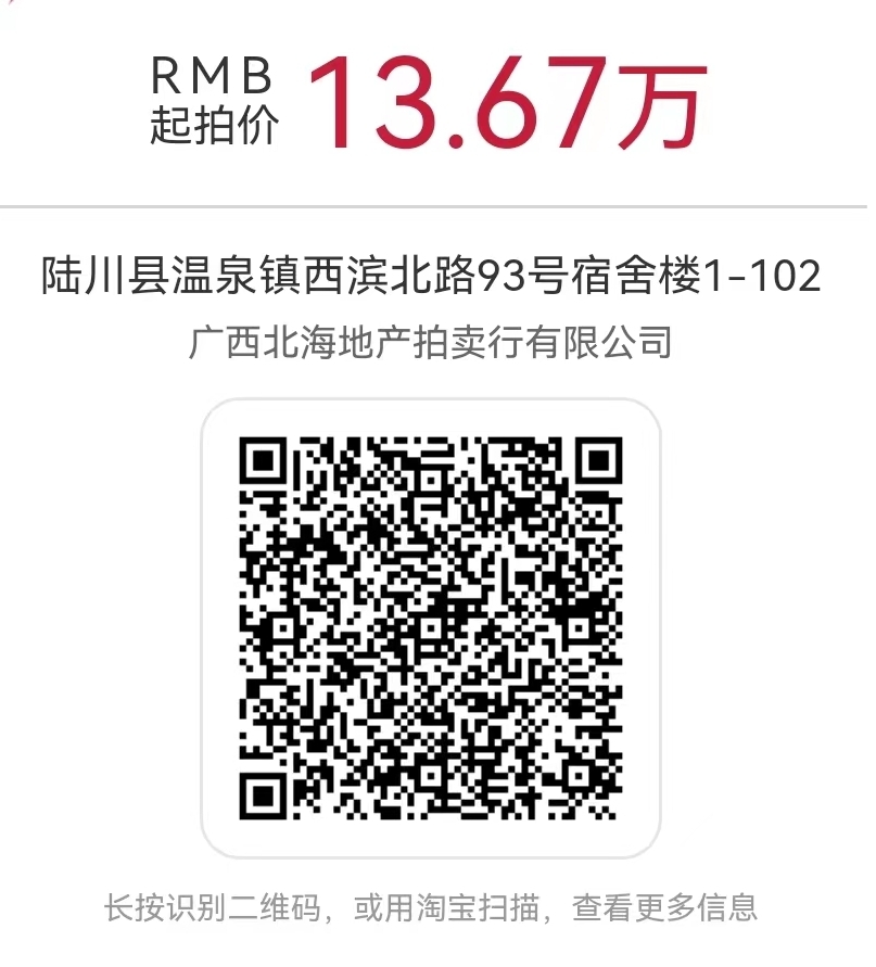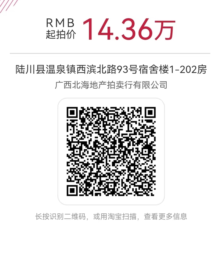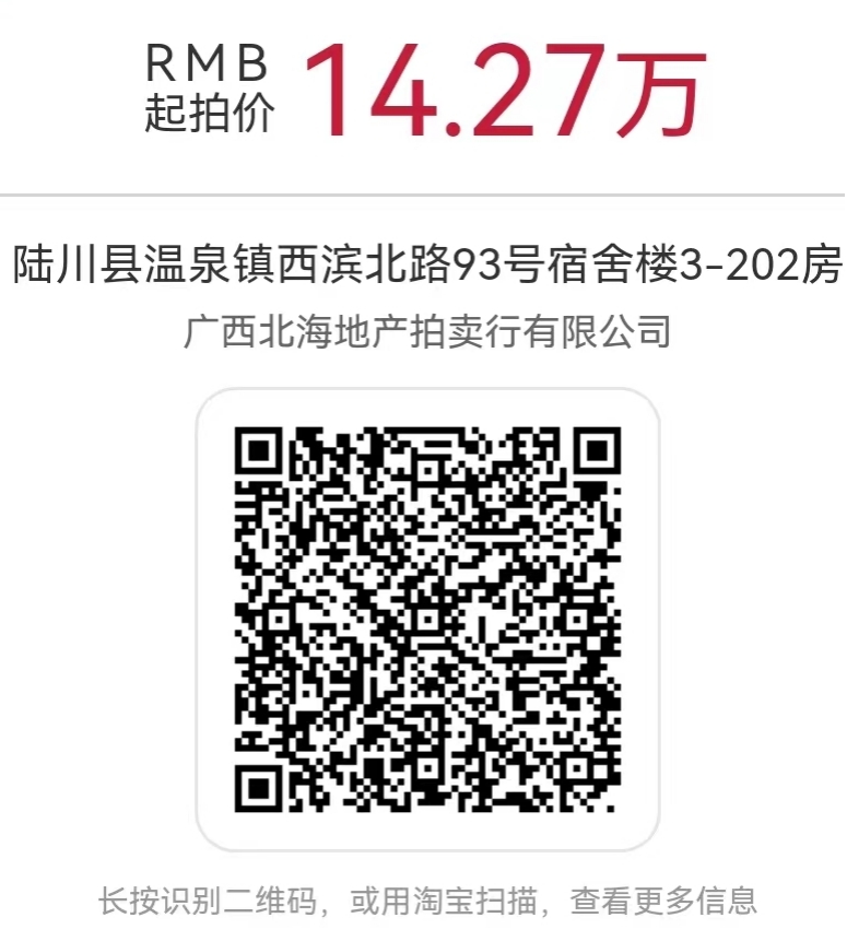 三、展示:标的于2022年11月30日、12月1日、2日在广西玉林市陆川县温泉镇西滨北路93号进行现场展示。标的以现场展示现状为准。请有意者于2022年11月29日17:00前联系我公司,进入我公司拍卖信息化管理系统(https://a.dc625.com)—标的目录—搜索“银行自有房产(陆川)”—点击“详情”—点击“展示”“登记看货人信息”进行展示申请登记,按我公司安排的展示时间查看标的。