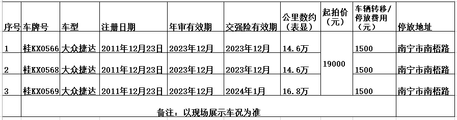 受委托,我公司将在中拍平台(网址:https://paimai.caa123.org.cn)举行拍卖会,公开拍卖理赔车一批(3辆打包整体拍卖),竞买保证金10000元(拍卖成交后竞买保证金自动转为过户保证金)。具体如下: