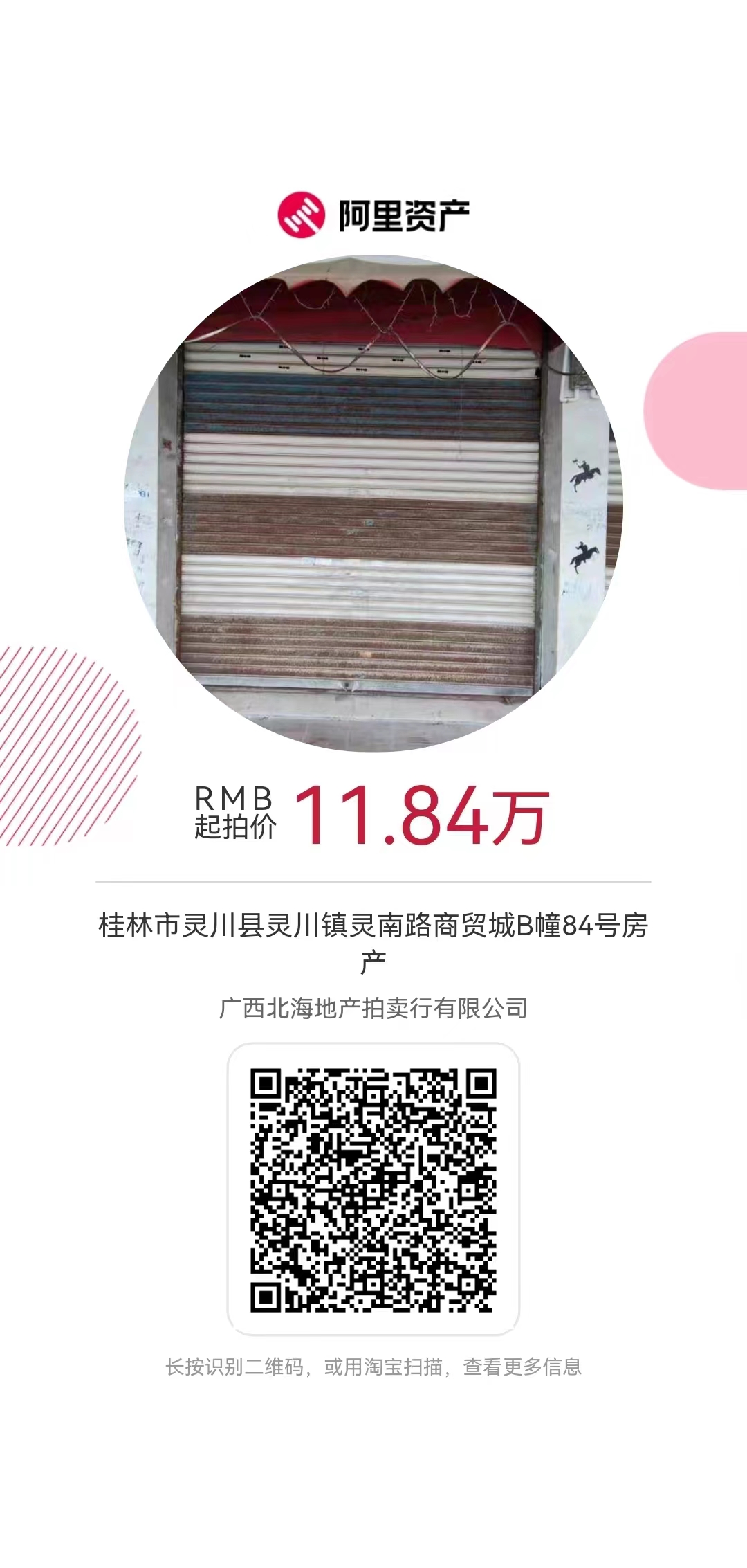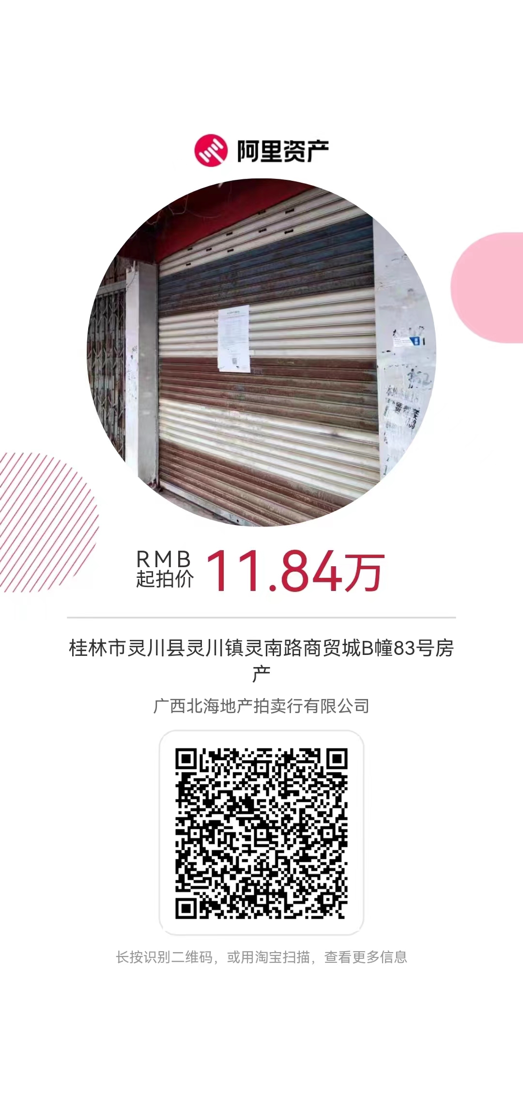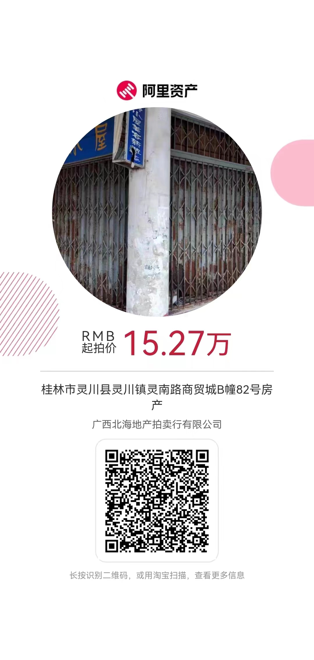 三、展示:标的自公告之日起至拍卖竞价结束前在广西灵川县灵川镇灵南路商贸城标的进行现场展示,标的以现场展示现状为准。请有意者于2023年4月19日17:00前联系我公司,进入我公司拍卖信息化管理系统(https://a.dc625.com)—标的目录—搜索“银行自有房产(灵川商贸城)找到需要参加展示的房号”—点击“详情”—点击“展示”“登记看货人信息”进行展示申请登记,按我公司安排的展示时间查看标的。