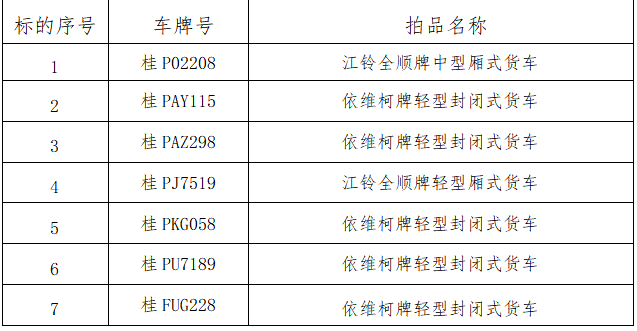 受委托,我公司将于2024年11月4日9:00时—16:00时(延时的除外)在阿里拍卖资产处置平台上(网址:http://zc.paimai.taobao.com,)举行拍卖活动,公开拍卖二手车七辆。